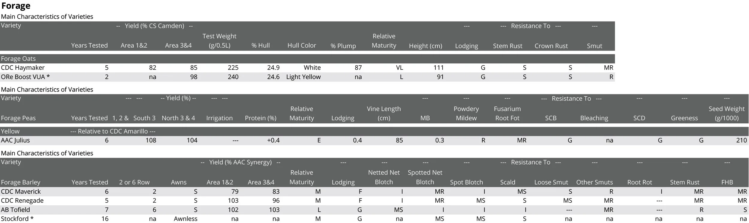 Source: 2025 SaskSeed® Guide & *2024 SaskSeed® Guide