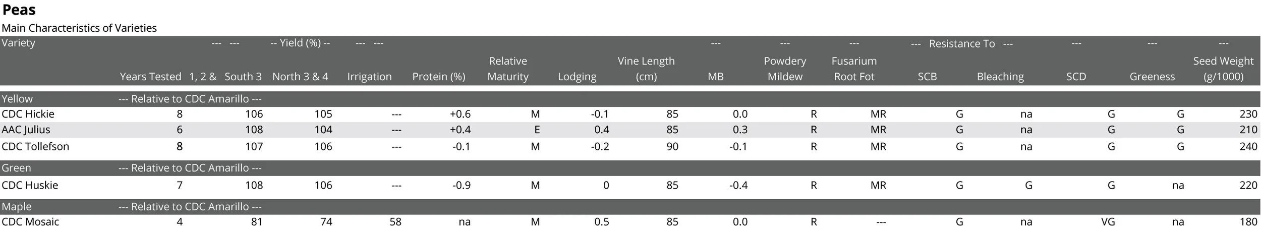 “Peas have come a long way on yield and disease resistance. We are picking varieties with better lodging, fusarium root rot resistance and seed coat breakage resistance. CDC Julius is a new variety with small seed size (lower seeding rate) and good seed coat that makes it a desirable variety for growers. ”